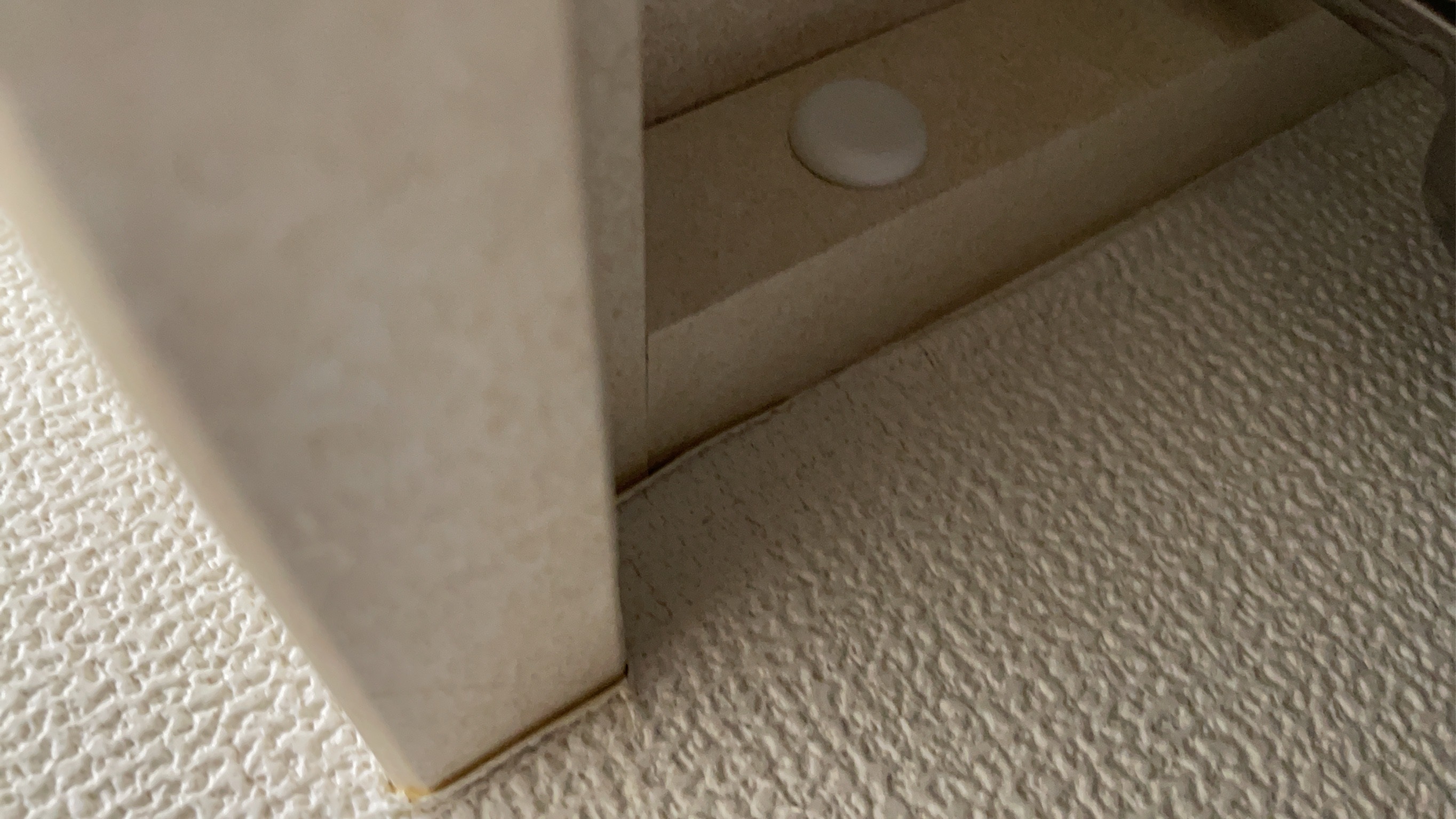白色のキャップを取り除くと木ネジが現れるので取り除きます。