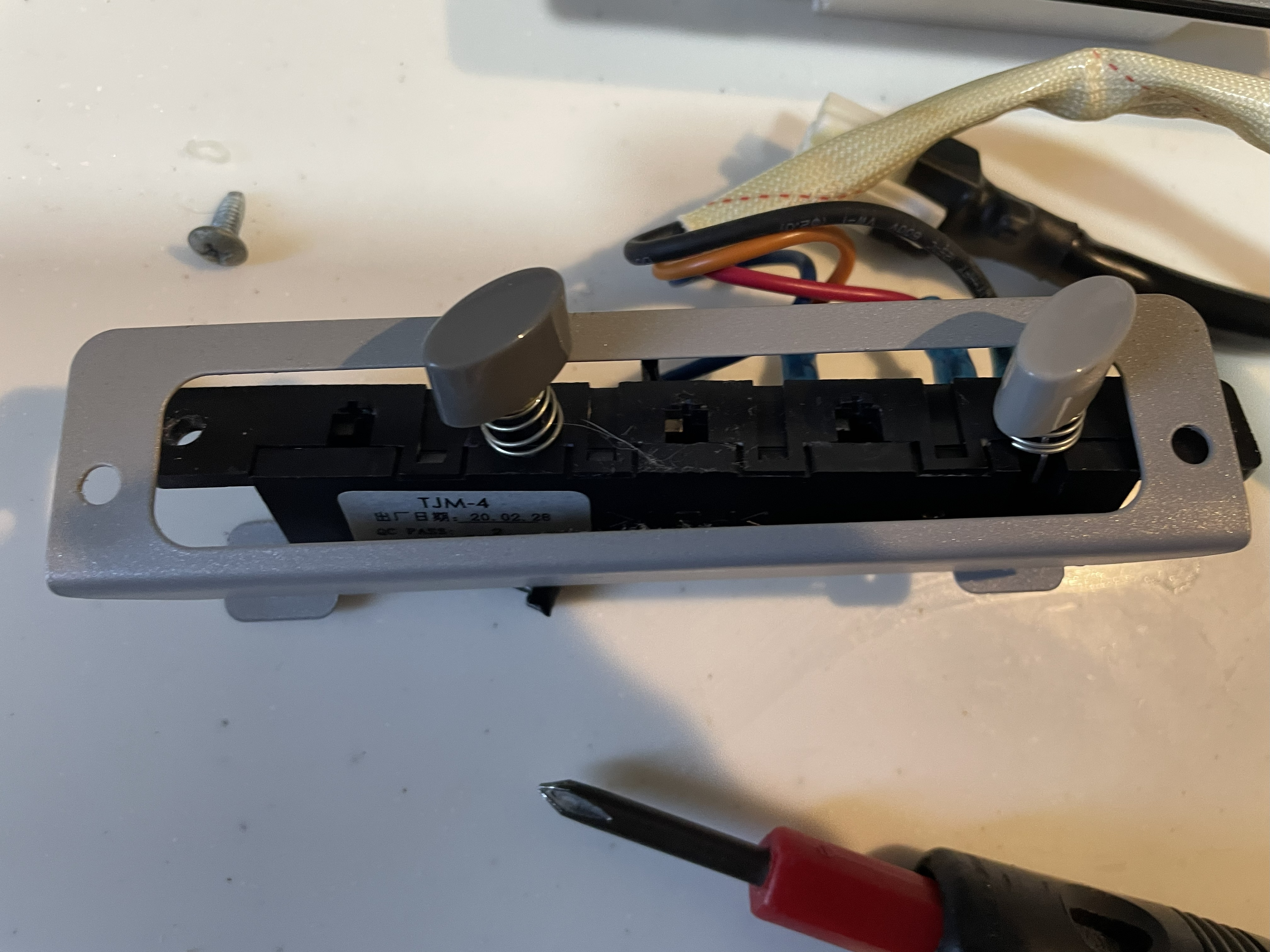 TAJIMA製品なのですが、どんだけ調べてもスイッチ(パーツ形式:TJM-4)のみ取り寄せは不可能の様子。