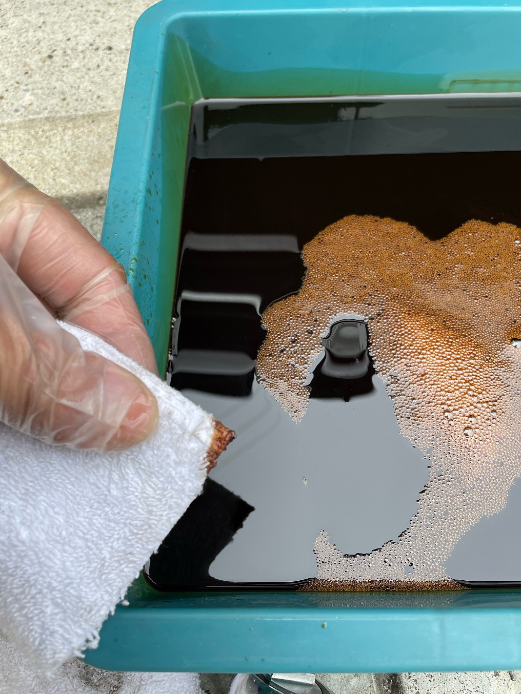 それも以前のユーザーさんのコケ傷多く、且つ色褪せた無塗装黒部を隠蔽するための炙りでボディが焦げてます・・・