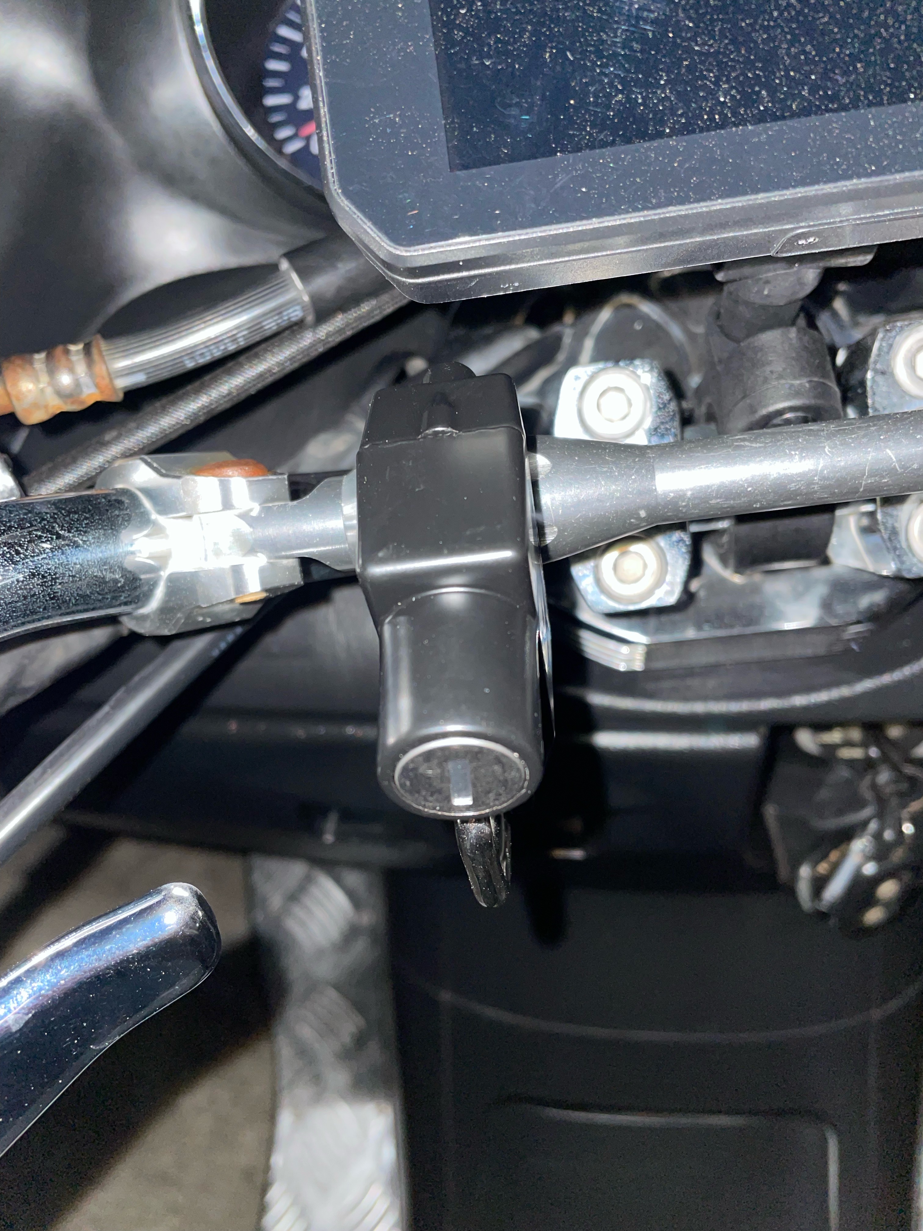 メットインが大きいのでヘルメット2個入るのですが、買い物した後などはいらないのでバーに鍵を取り付けてみました。