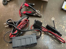 バッテリー充電用ワニ口クリップと常時取り付けようハーネス・充電器