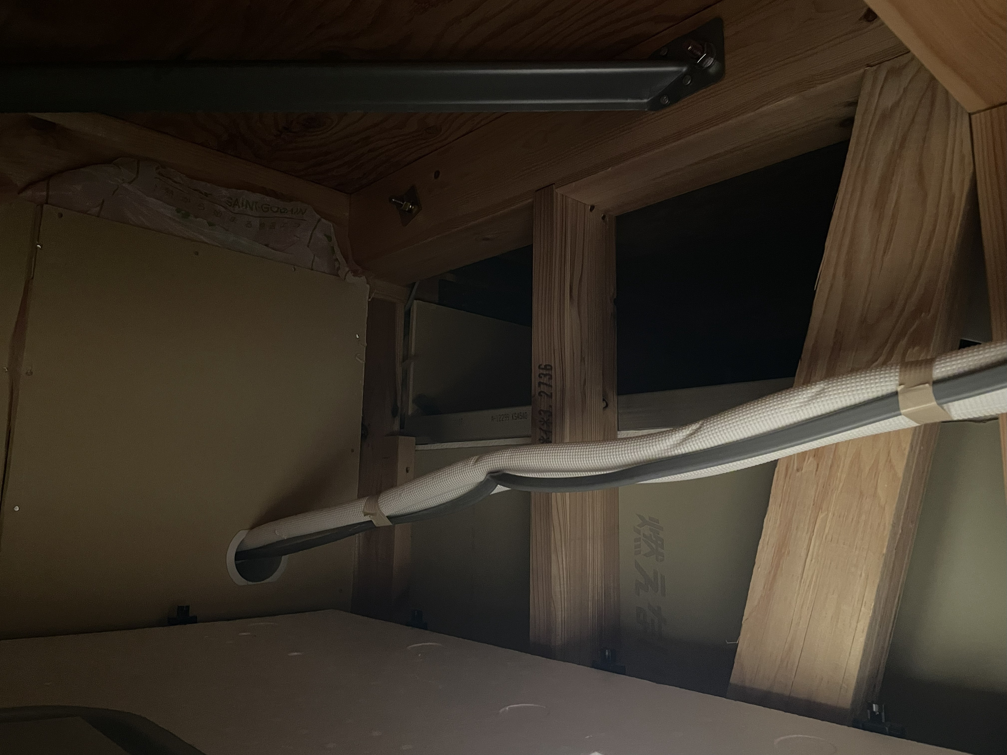 傾斜が逆についてしまうのでここからのドレンは諦め別のところから出しました。